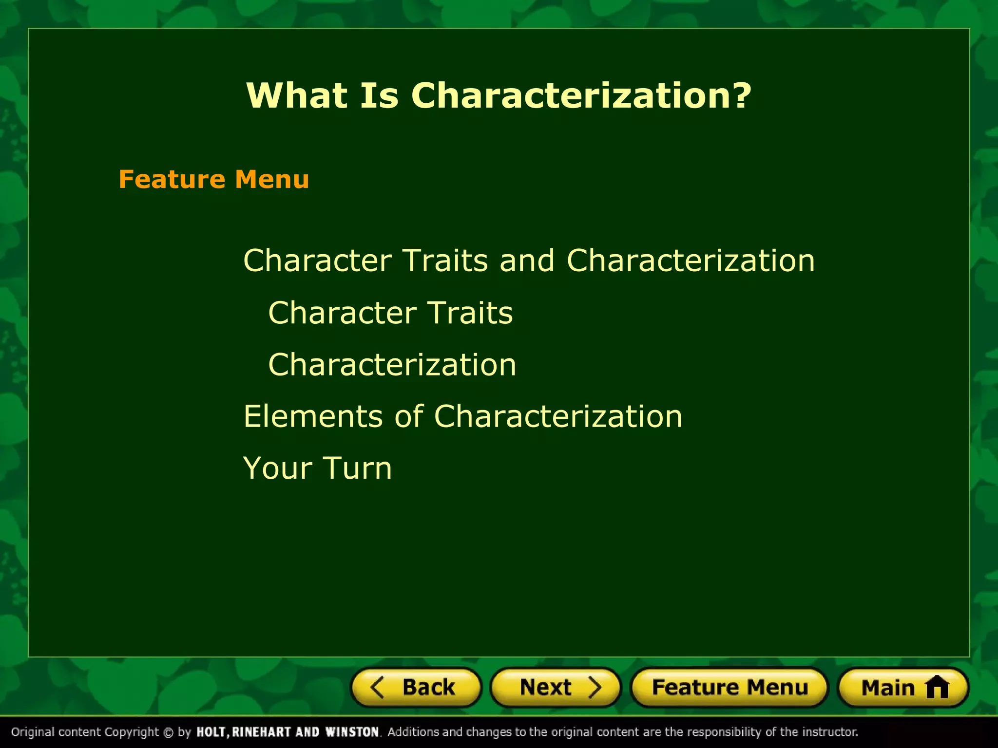 This document discusses characterization in stories. It defines characterization as the process writers use to reveal a character's traits. There are two main methods: direct characterization tells the reader what a character is like, while indirect characterization shows the reader through a character's actions, speech, thoughts, and how others react to them. The document provides examples of both direct and indirect characterization and examines the different elements writers can use like appearance, actions, speech, thoughts and feelings to indirectly characterize their characters.