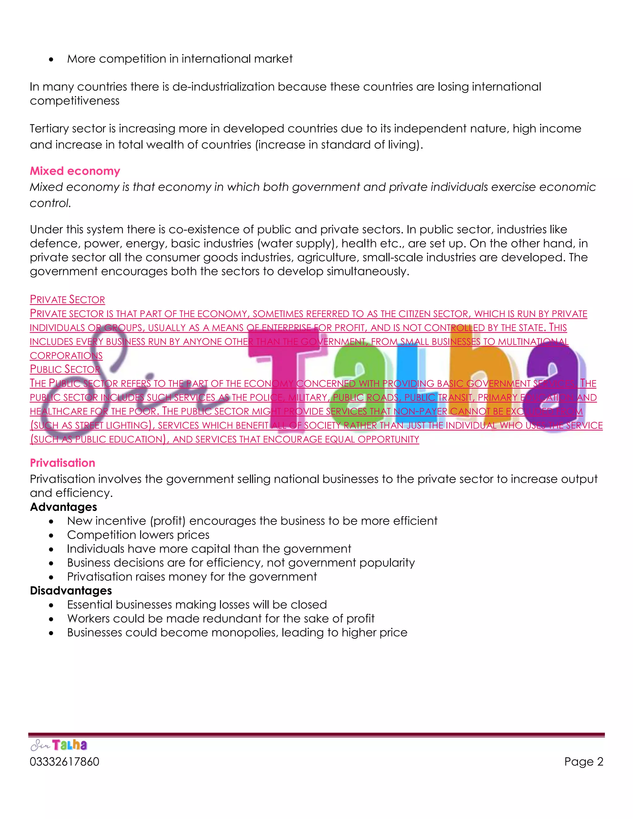 This document discusses the classification of businesses into three sectors: primary, secondary, and tertiary. The primary sector involves extraction and processing of natural resources. The secondary sector transforms raw materials into goods through manufacturing. The tertiary sector provides services. Most developed countries have larger tertiary sectors that employ more workers than other sectors. Developing countries rely more on primary sectors. Governments use mixed economies with both public and private sectors. Privatization involves selling state-owned businesses to private owners to increase efficiency.