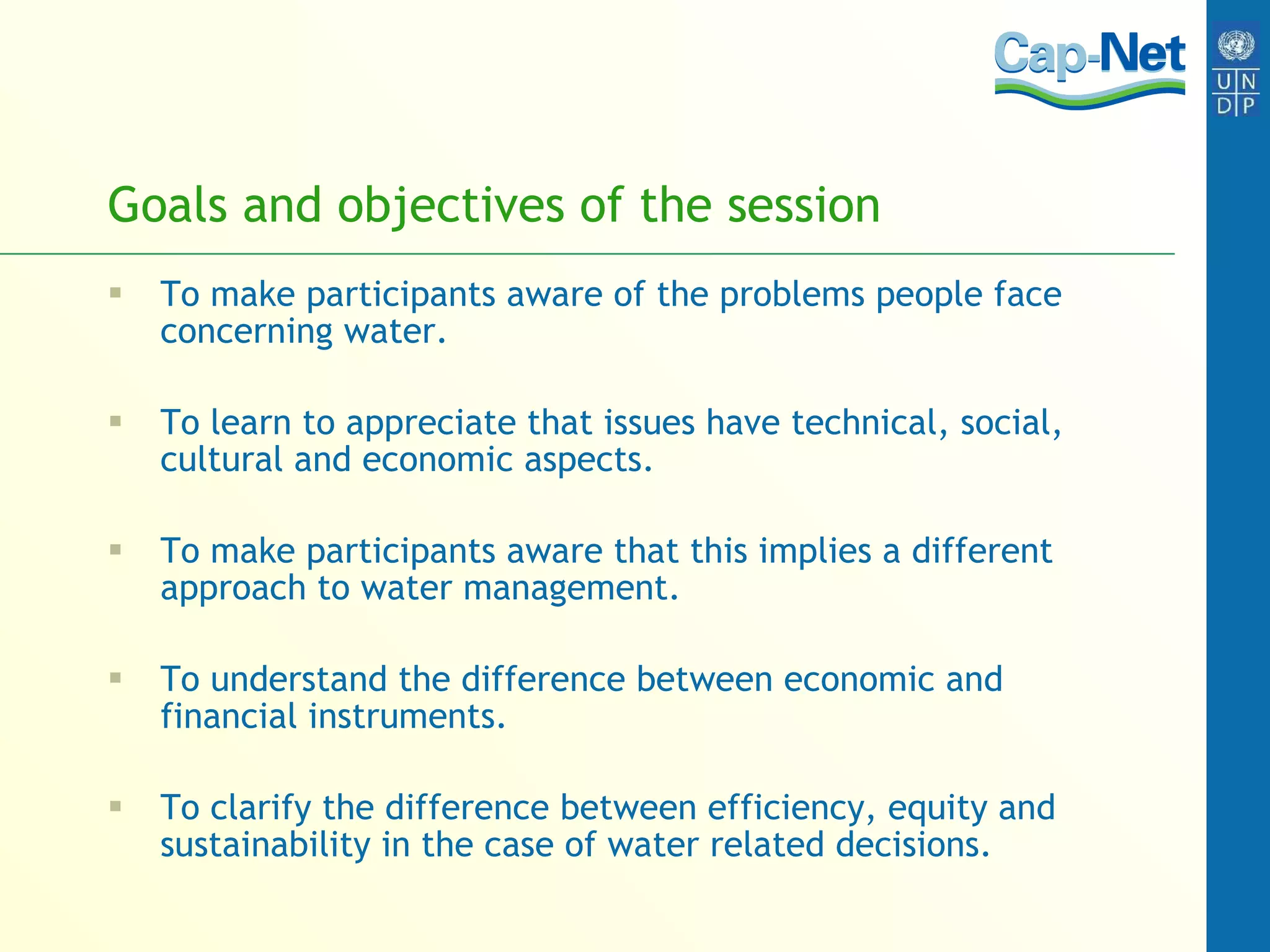 This document discusses using economic and financial instruments for integrated water resource management (IWRM) to improve efficiency, equity, and sustainability. It addresses major issues in water management like achieving development goals and climate change adaptation. Economic principles like rational resource use, cost recovery, and polluter pays are important to consider. Economic instruments like taxes and subsidies can be applied. Financial instruments may also be needed to fund investments and operations. IWRM aims to achieve efficiency, equity for vulnerable groups, and long-term environmental, social, and economic sustainability of water services.