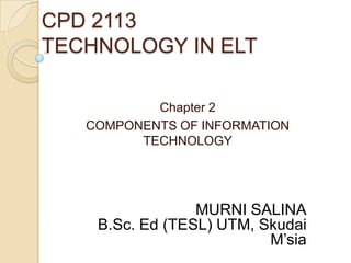 An information system has five key components: people, procedures, software, hardware, and data. The document explains each component in detail - people are end-users, procedures are rules for using the system, software are computer programs, hardware are physical devices, and data is raw unprocessed information. An information system brings together these five elements to convert data into useful information for people.
