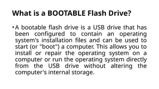 •A bootable flash drive is a USB drive that has