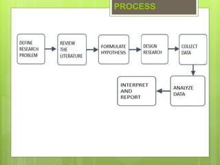 This document discusses different types of research including applied, basic, correlational, descriptive, ethnographic, experimental, exploratory, historical, phenomenological, action research, and qualitative research methods like observation, interviews, focus groups, and content analysis. It also defines independent, dependent, intervening, control, and confounding variables and provides examples of how they are used in research studies.