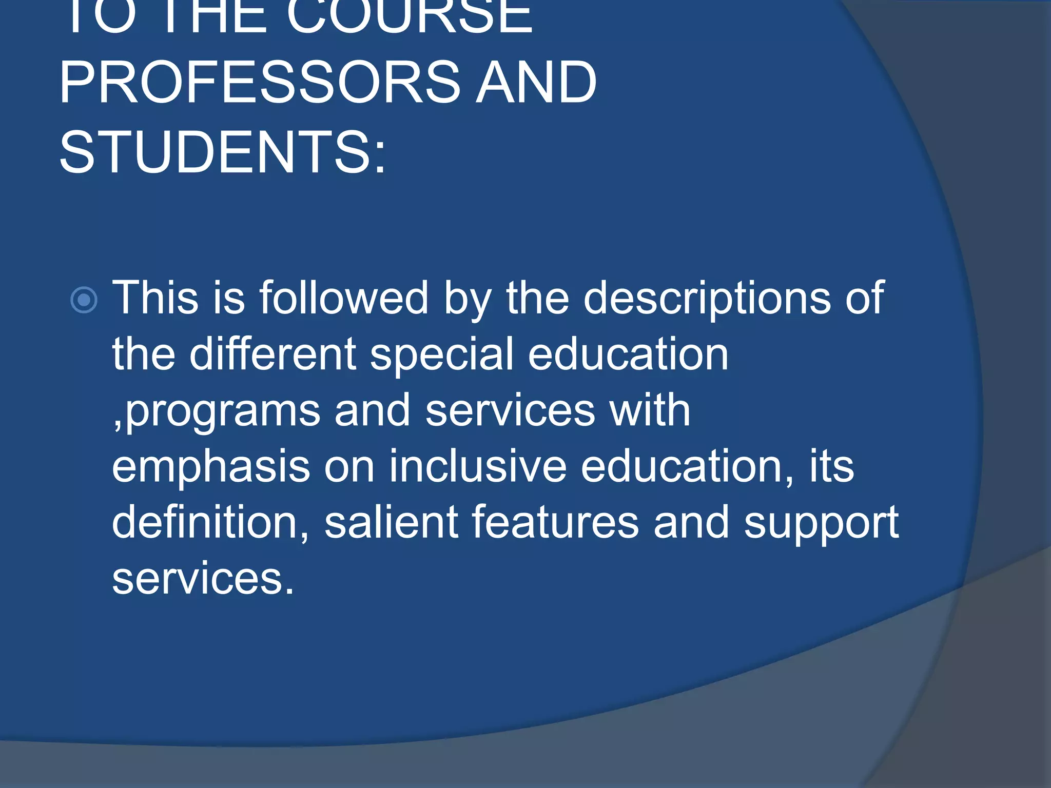 This document discusses special education programs and services in the Philippines. It defines key terms related to the prevalence of students with special needs, such as prevalence, identifiable prevalence, and true prevalence. It also compares prevalence estimates from UNICEF and the WHO. The document describes the different special education programs offered in public and private schools, including special education centers, special classes, integration programs, partial and full mainstreaming, special day schools, and residential schools. It also discusses inclusive education and the support services provided to students with special needs.