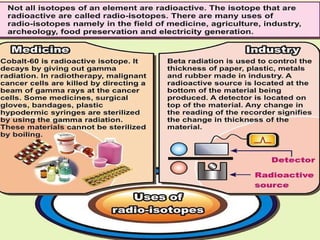 The document discusses the structure of atoms and isotopes. It begins by defining matter and the particle theory of matter. It then explains that atoms are made up of protons, neutrons and electrons. The atomic structure of various elements is discussed through their electron configurations. Isotopes are then introduced as atoms of the same element that have the same number of protons but different numbers of neutrons. Examples of isotopes including hydrogen and oxygen isotopes are provided.