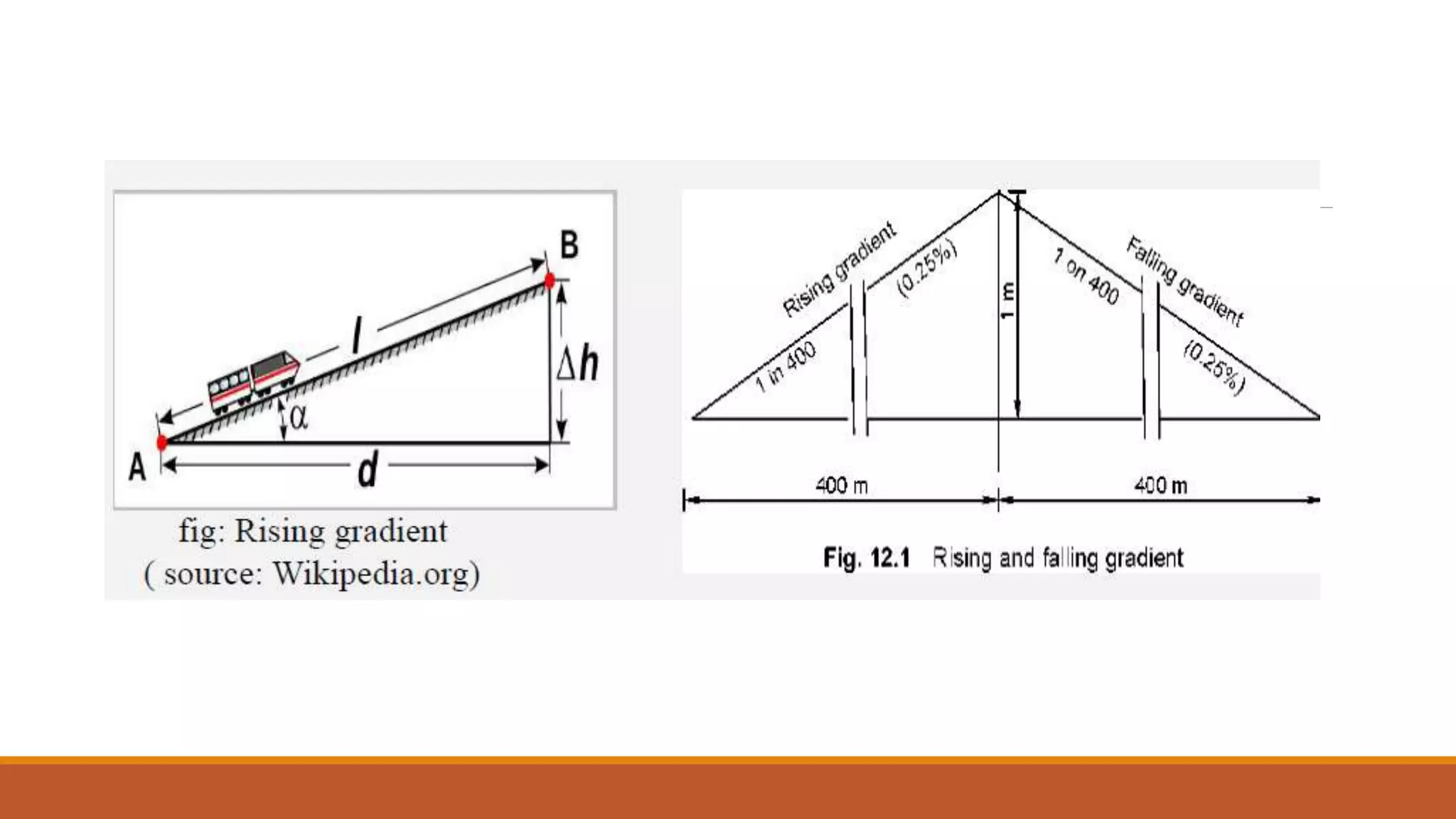2. Key parameters that determine track geometry include gradients, curve radii, superelevation/cant, and horizontal and vertical curves.