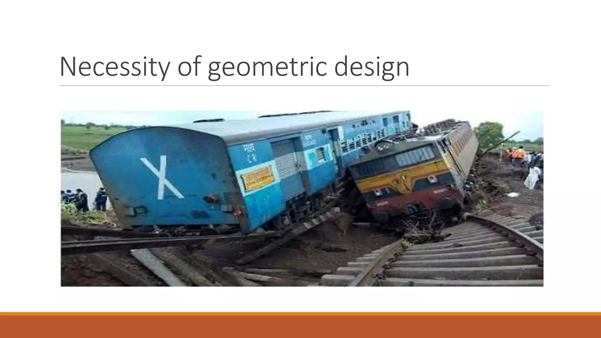 1. Proper geometric design of railway tracks is necessary to ensure safe and smooth running of trains at maximum speeds and loads.