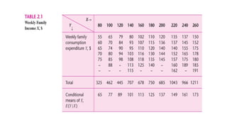 • Expected, value of weekly consumption expenditure, E(Y); it is unconditional in