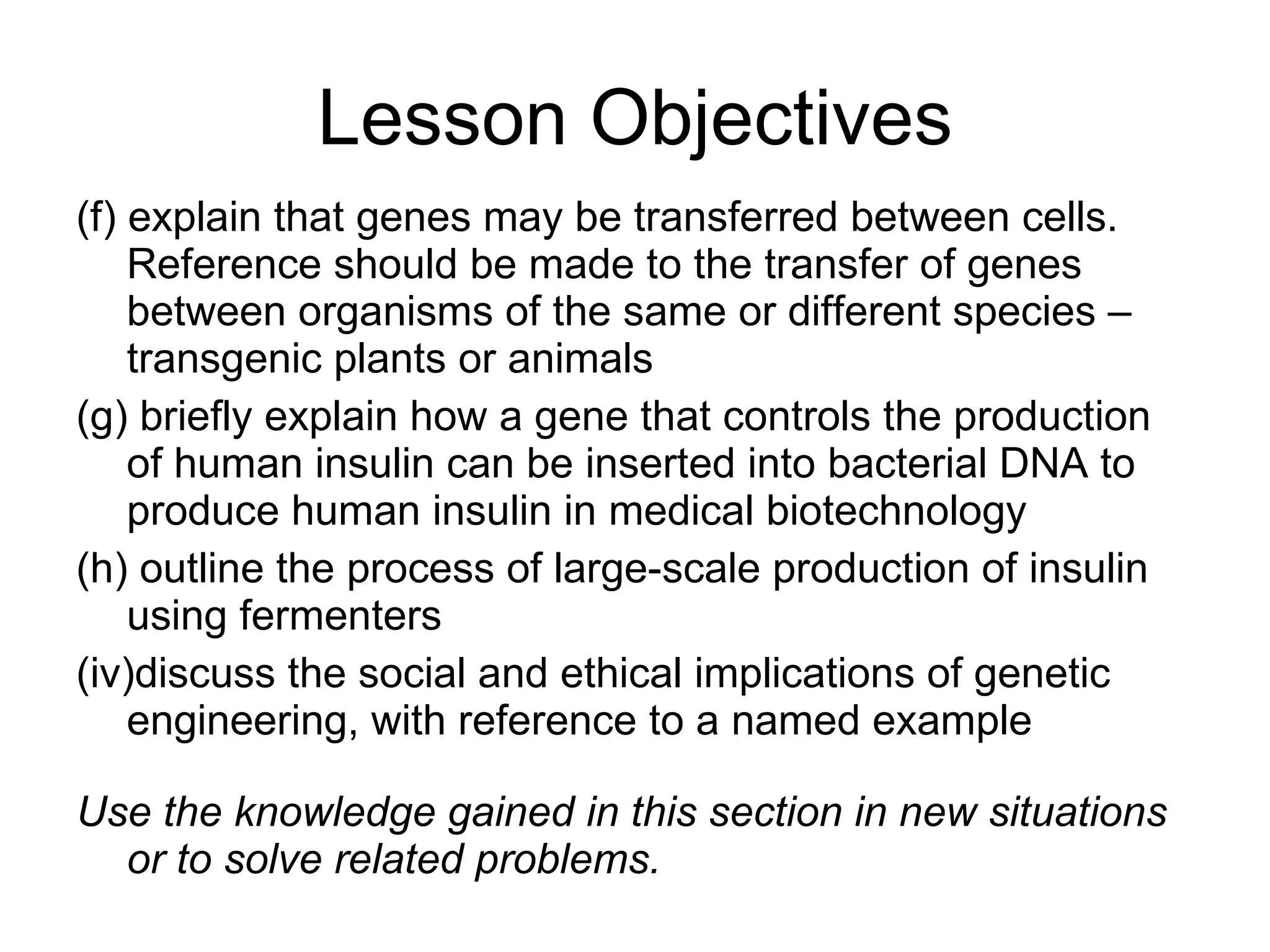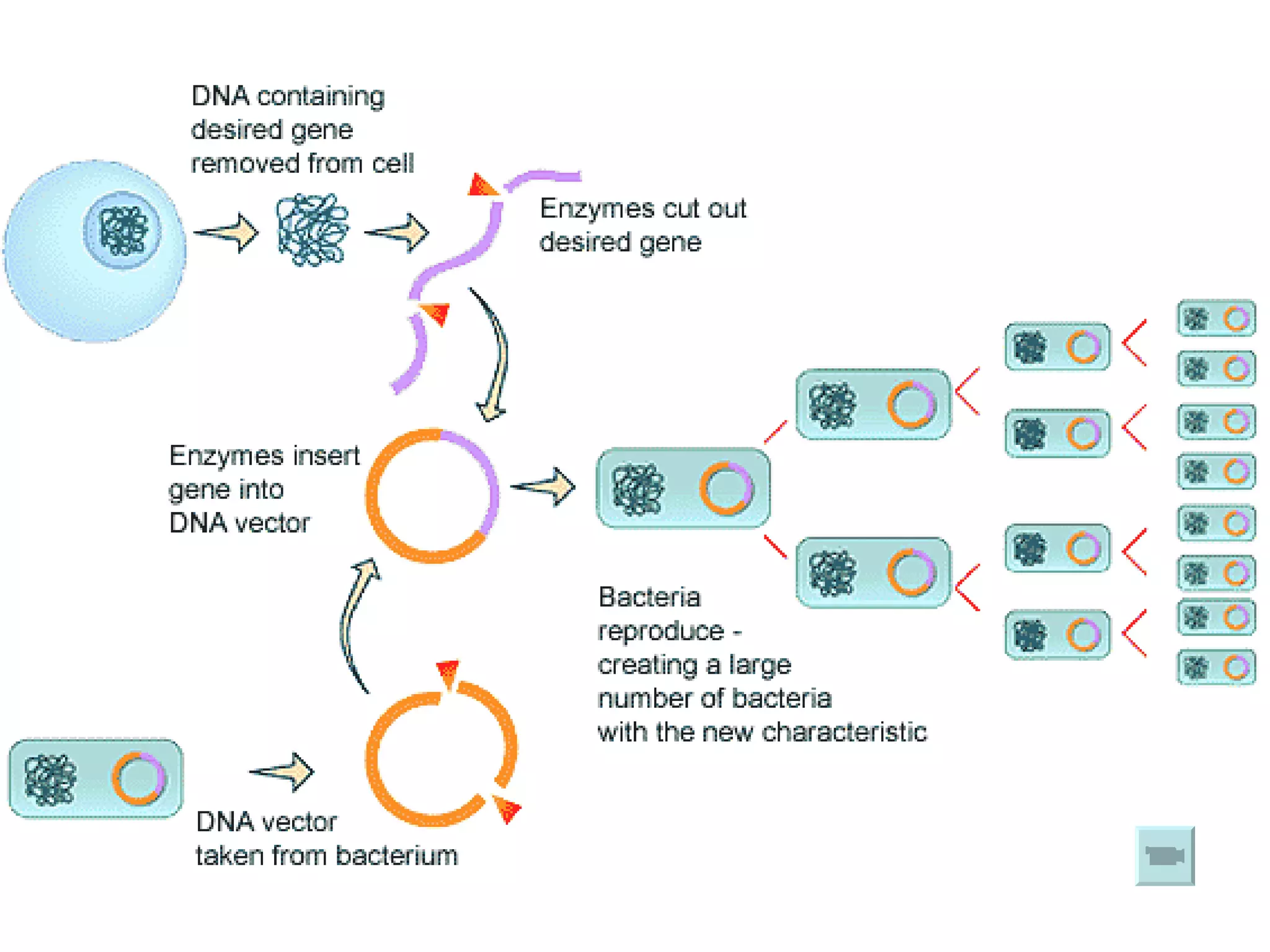 Genetic engineering is a technique used to transfer genes between organisms. It involves identifying the desired gene, using restriction enzymes to cut it from donor DNA, and inserting it into a vector like a plasmid. This vector is then inserted into a host cell like E. coli bacteria. For insulin production, the human insulin gene is inserted into bacterial DNA. The engineered bacteria are grown in large fermenters under controlled conditions to produce large quantities of human insulin. While genetic engineering has benefits like producing affordable insulin, it also raises social and ethical concerns regarding environmental impacts, economic issues, and potential health risks.