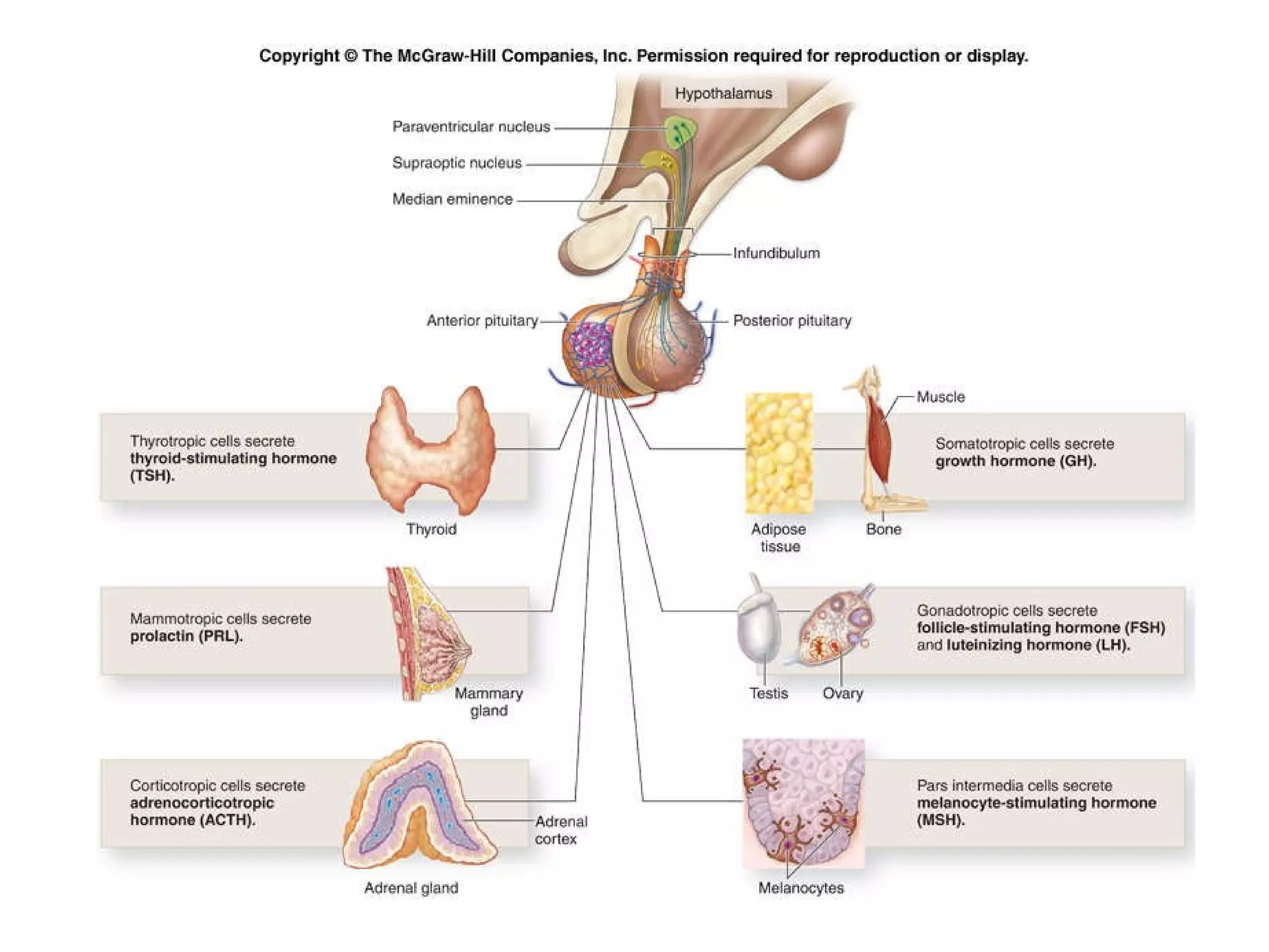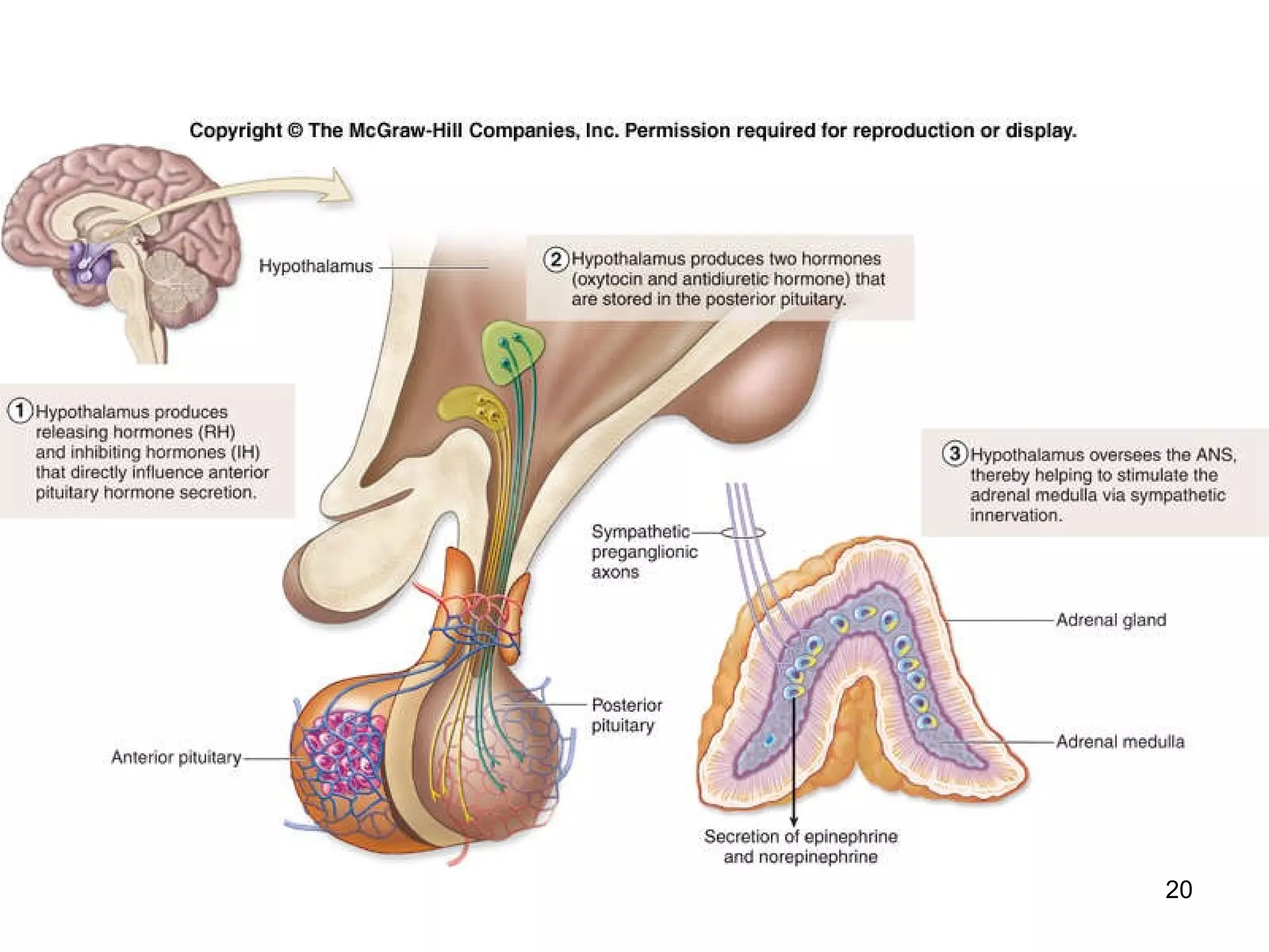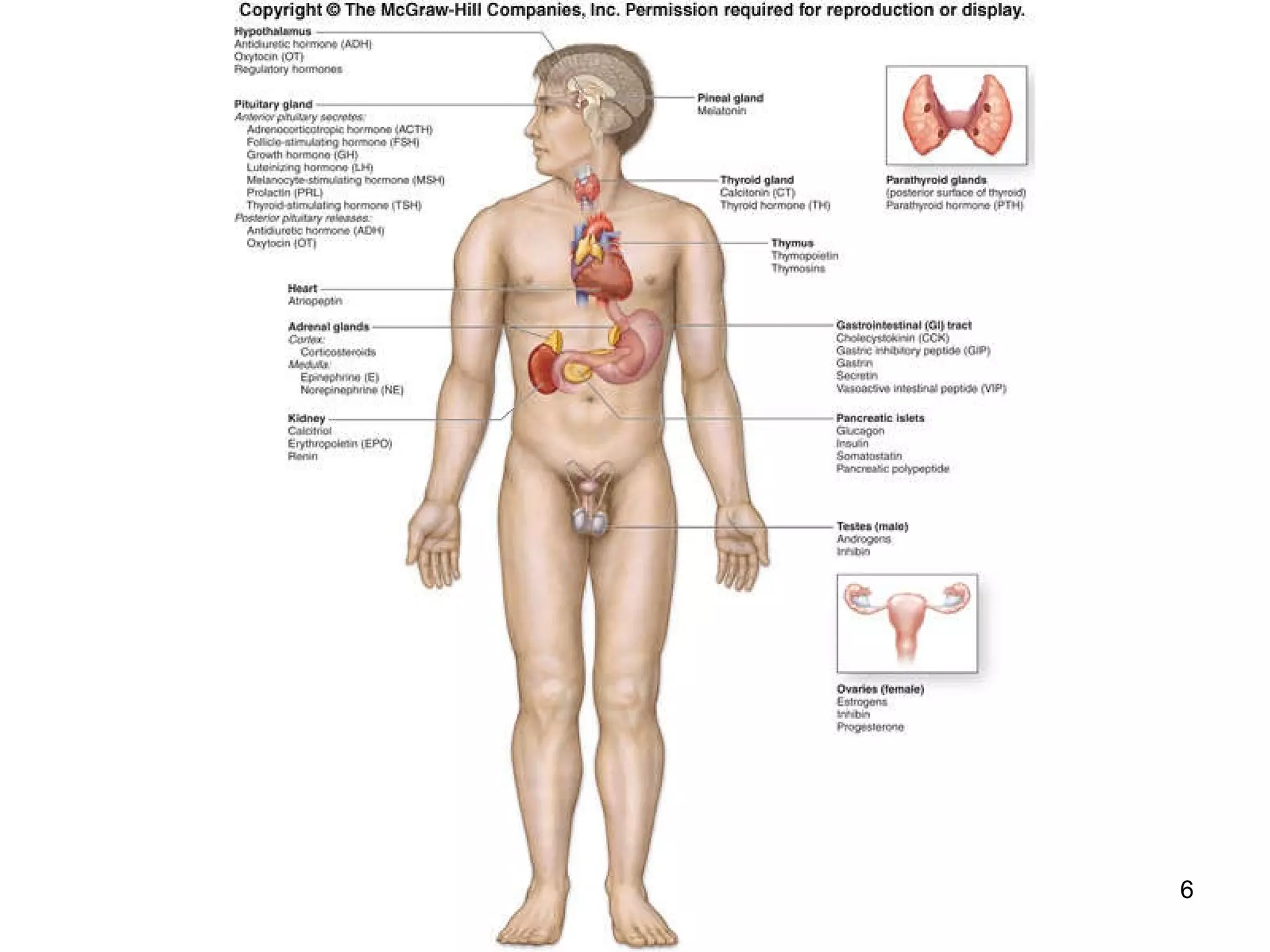 2) It describes the major endocrine glands and hormones, including the hypothalamus, pituitary gland, thyroid gland, parathyroid glands, and their functions.