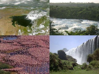 East Africa is a land of high plains and plateaus with long, deep rift valleys running through it. The Great Rift Valley stretches from the Red Sea through Ethiopia and Tanzania. East Africa has many large volcanic mountains like Mount Kilimanjaro and plains home to national parks. The region features lakes like Lake Victoria and the Nile River. Climate varies from desert in the north to tropical in the south. East Africa has a diverse population and was influenced by European colonization in the 19th century. Many countries struggle with issues like poverty, conflict, and reliance on agriculture.