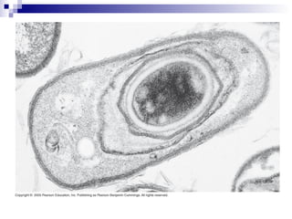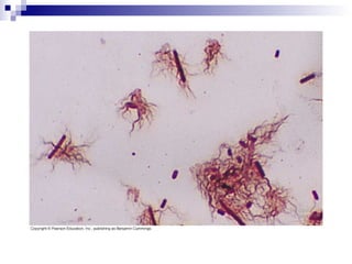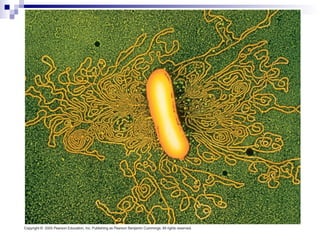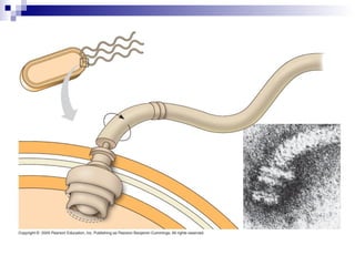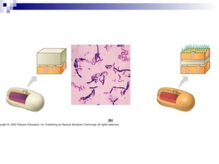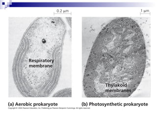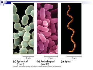 2. Prokaryotes differ from eukaryotes in their lack of membrane-bound organelles and smaller genome size. They reproduce through binary fission and genetic variation occurs through transformation, conjugation, and transduction.