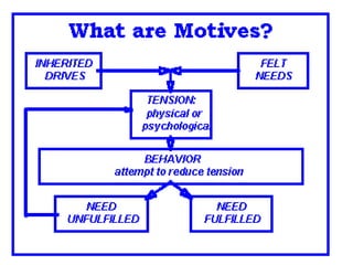 This document discusses consumer motivation and the consumer decision making process. It defines motivation as the internal process that drives consumers to achieve goals. The motivation process involves a need or tension that the consumer wants to resolve. Marketers aim to understand consumers' manifest and latent motivations in order to develop products that satisfy those needs. The summary examines different theories of motivation and how understanding motivation can help guide marketing strategy.