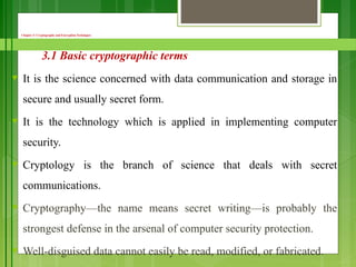Cryptography is the study of designing the techniques of cryptosystem. It