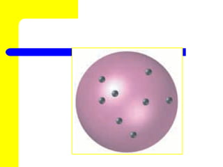 The document discusses the history of atomic theory from ancient Greek philosophers to modern atomic structure. It introduces key figures like Democritus, Dalton, Thomson, and Rutherford and their contributions to understanding that all matter is made of tiny indivisible particles called atoms. The document also describes the discovery of subatomic particles like protons, neutrons, and electrons, and how electrons occupy distinct energy levels around the nucleus in an atom.