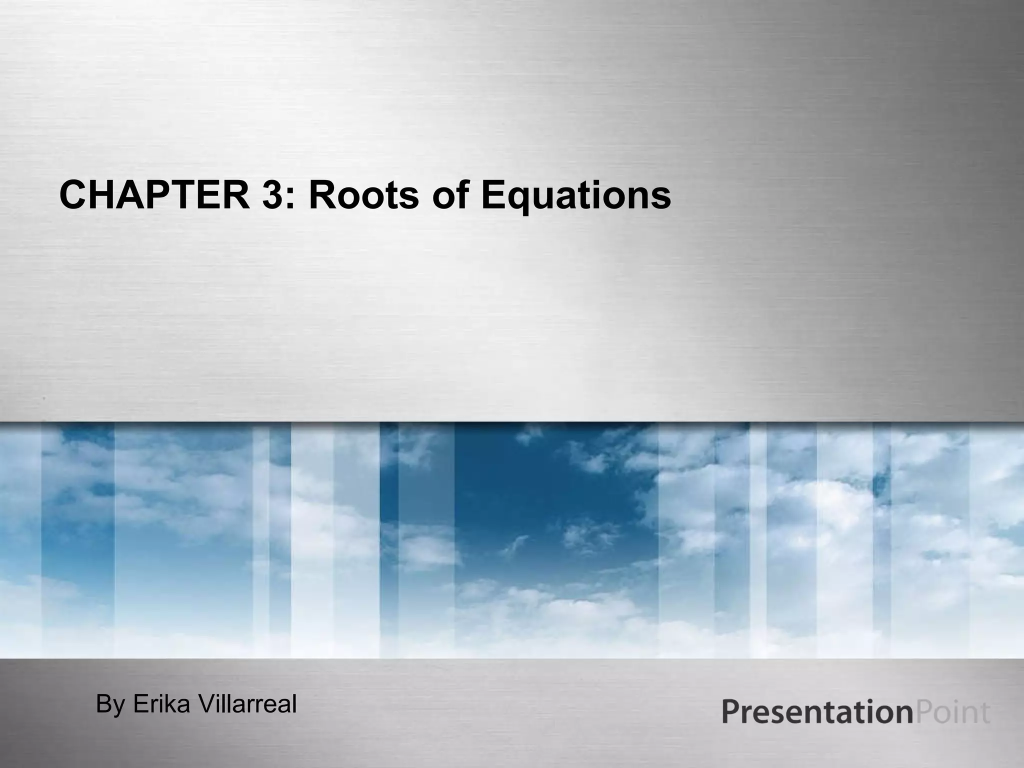 The document discusses various numerical methods for finding the roots or zeros of equations, including closed and open methods. Closed methods like bisection and false position trap the root within a closed interval by repeatedly dividing the interval in half. Open methods like Newton-Raphson and secant methods use information about the nonlinear function to iteratively refine the estimated root without being restricted to an interval. The document also covers methods for equations with multiple roots like Muller's method.