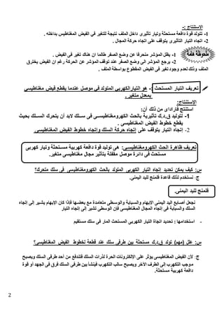 تتناول الوثيقة ظاهرة الحث الكهرومغناطيسي كما اكتشفها فاراداى، والتي تتعلق بتوليد تيار كهربائي عبر سلك يتحرك في مجال مغناطيسي. تشرح الوثيقة كيفية قياس هذا التيار باستخدام الجلفانومتر وتحديد اتجاهه. تم توضيح كيفية تأثير الحركة والتغيرات في المجال المغناطيسي على التيار المتولد.