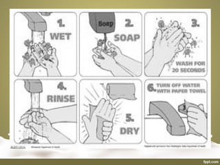 This document discusses the leading factors that cause foodborne illness: time/temperature abuse, poor personal hygiene/handwashing, and cross-contamination. It emphasizes the importance of properly storing, preparing and cooking foods to prevent bacterial growth, as well as maintaining good hygiene practices. Key steps include monitoring food temperatures, using a food thermometer, keeping foods out of the danger zone, thoroughly cooking and reheating foods, and preventing contamination between raw and ready-to-eat foods.
