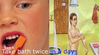 The document discusses a humorous perspective on personal hygiene routines following a bath, comparing human efforts to that of a dog. It emphasizes the various items involved in the process, such as towels and toiletries. The author reflects on the time-saving advantage of animals, like dogs, who can simply shake dry.