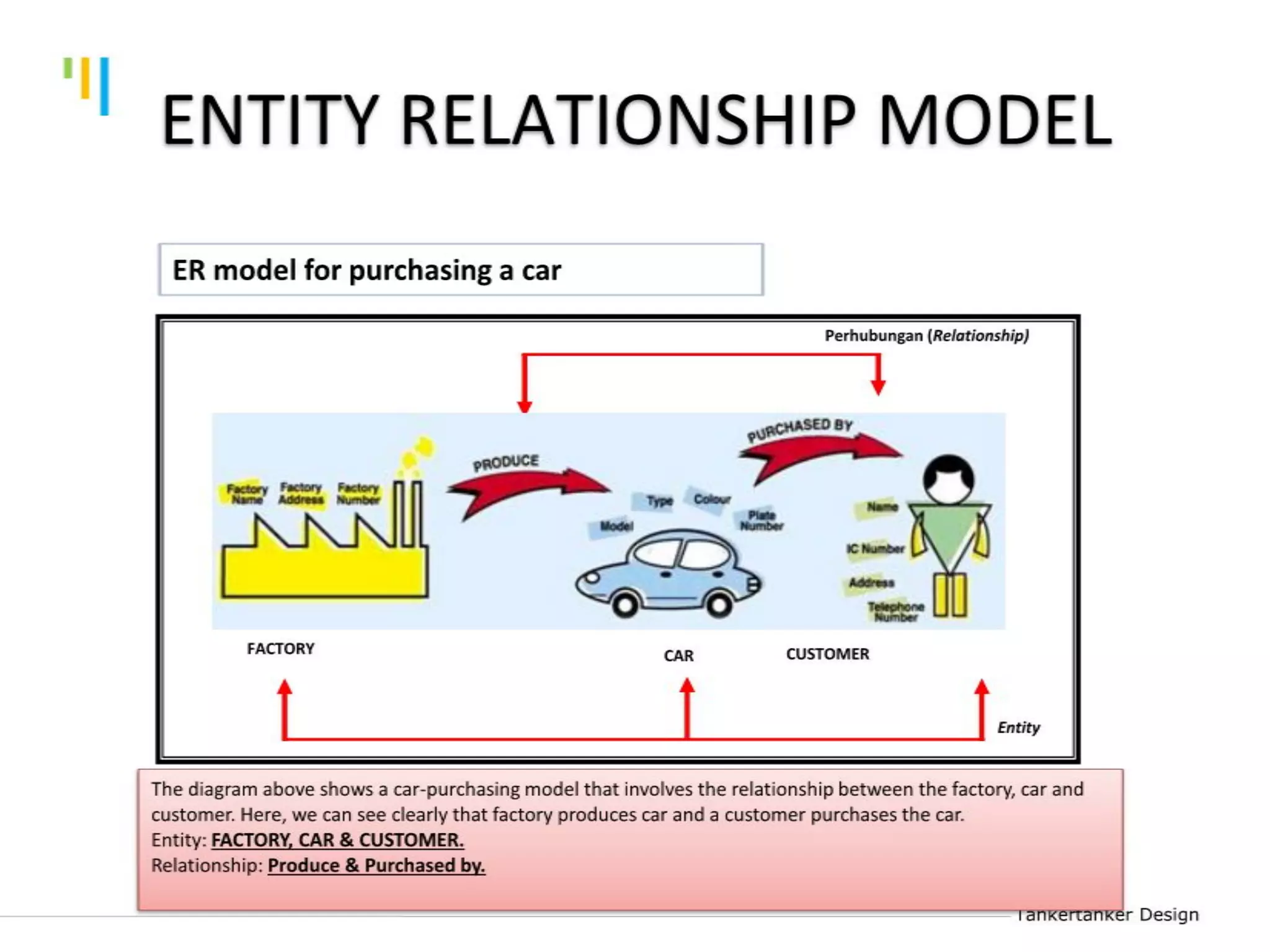 This document discusses database design using Entity Relationship Diagrams (ERDs). It covers how to draw ERDs using Chen's Model and Crow's Foot notations and define the basic elements of ERDs. Conversion rules are presented to convert ERDs into relational tables for one-to-one, one-to-many, and many-to-many relationships. An example is given to demonstrate drawing an ERD for a company database and converting it into relational tables.