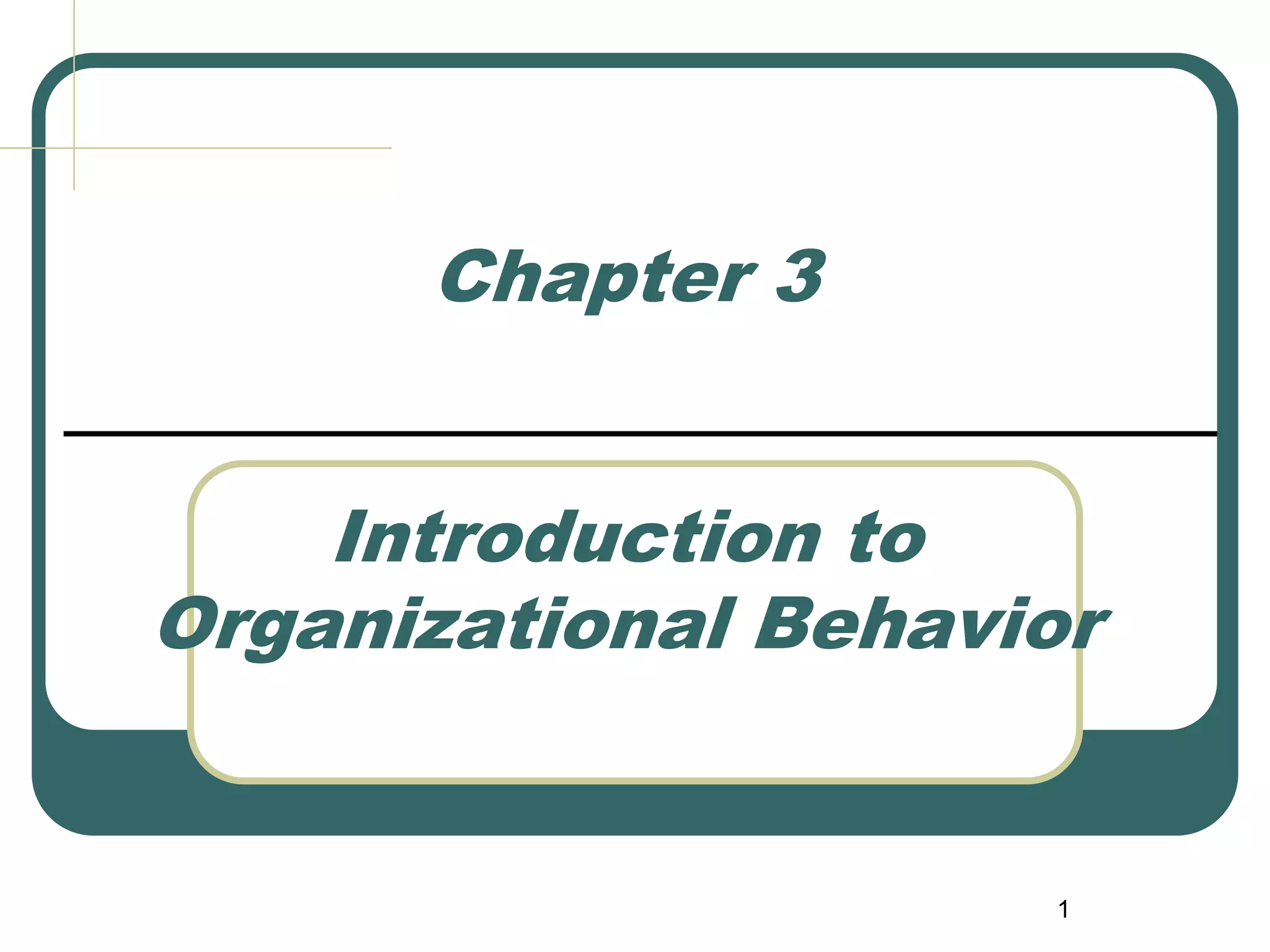 This document provides an overview of organizational behavior. It defines OB as the study of how individual and group behavior impacts organizational performance. It discusses management functions like planning, organizing, and leading. Key topics in OB include individual factors, group dynamics, and organizational systems and culture. The document also outlines challenges for OB like managing diversity and globalization, and how OB insights can help with issues like customer service, innovation, and work-life balance.