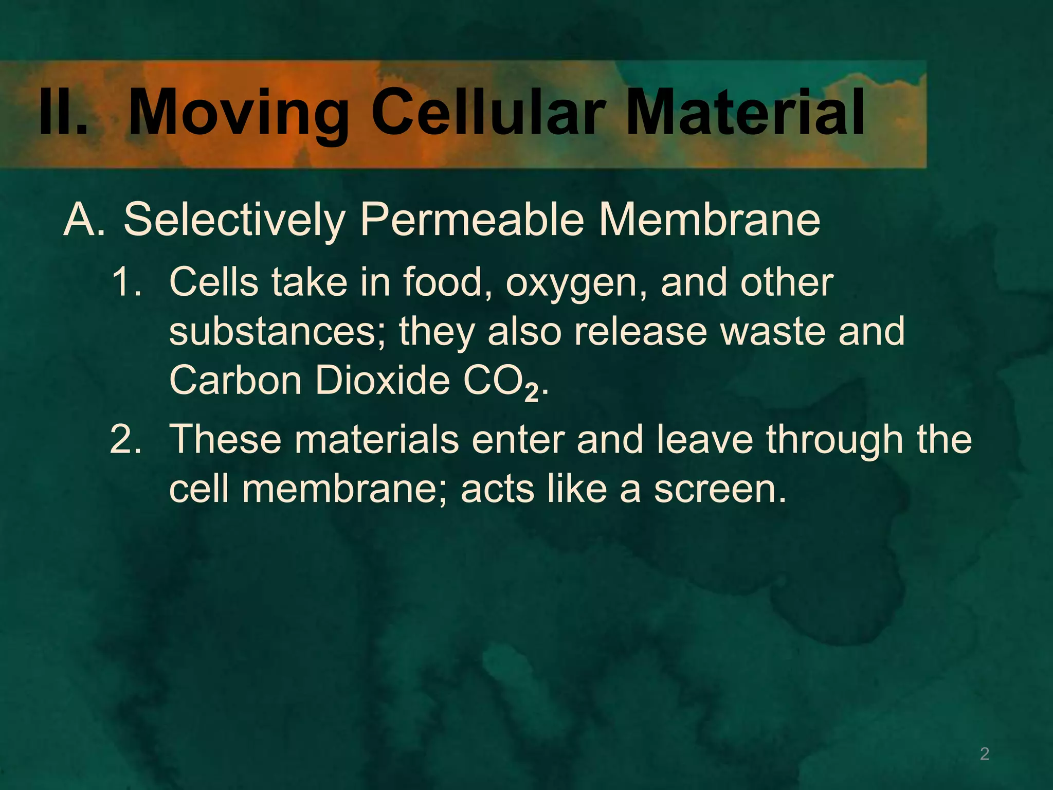 This document discusses how cells transport materials across their selectively permeable membranes. It describes three main types of transport: passive transport which includes diffusion and osmosis and moves substances down concentration gradients without energy; facilitated diffusion which uses transport proteins to move larger molecules; and active transport which moves substances against concentration gradients using energy from ATP with the help of transport proteins. Endocytosis and exocytosis are also covered as forms of active transport where large particles enter or leave cells through membrane invagination and budding.