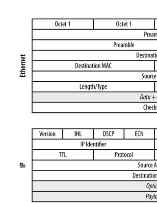 This chapter discusses network sensors and the data they generate. Examples of network sensors include NetFlow sensors on routers and packet capture tools like tcpdump. The chapter covers challenges of analyzing large network traffic data, and describes common data formats generated by sensors like NetFlow records and packet captures. It also discusses techniques for filtering large packet capture data, such as using rolling buffers, limiting packet snap lengths, and Berkeley Packet Filter rules.