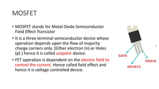 • MOSFET standsfor Metal Oxide Semiconductor
