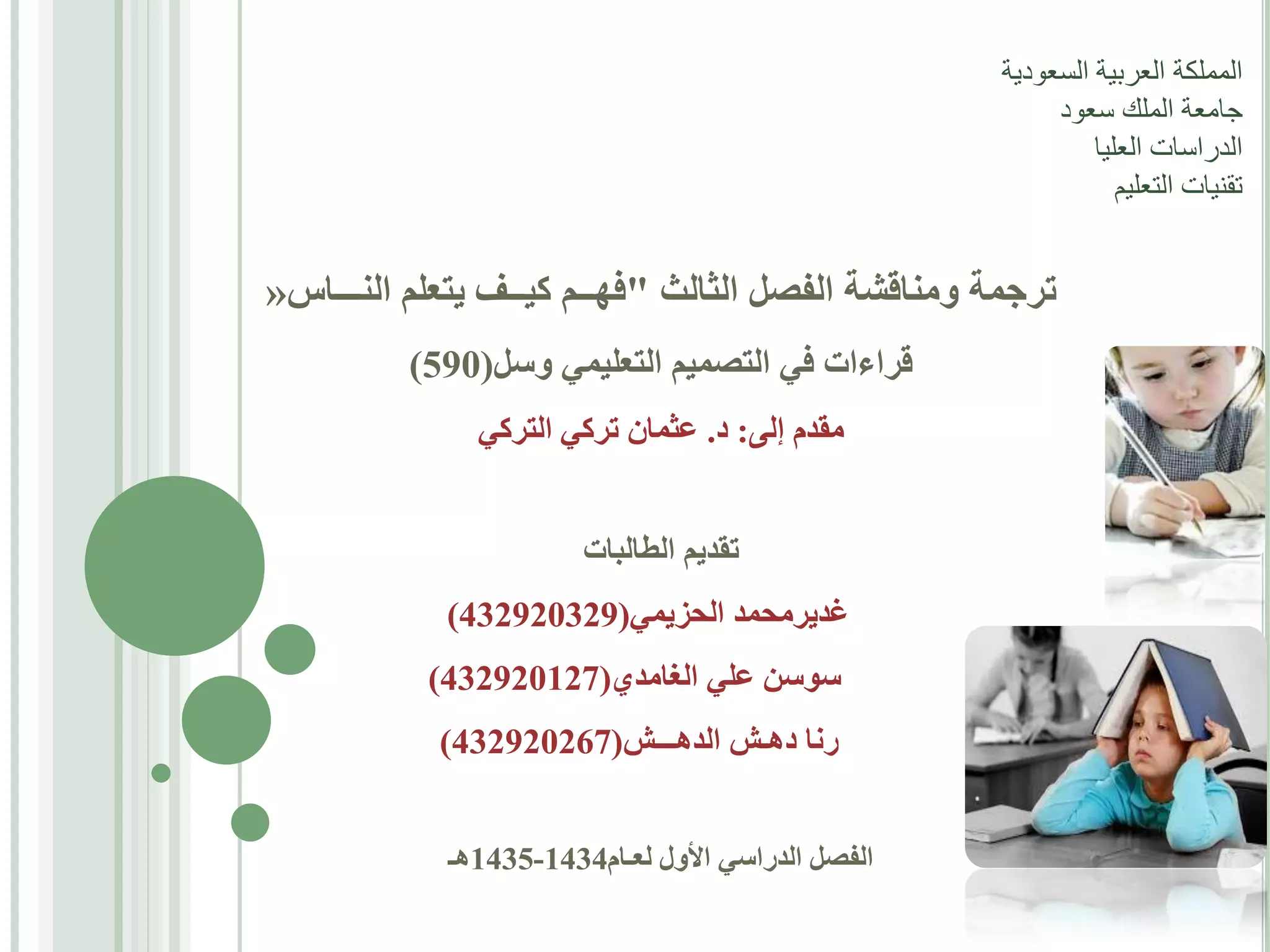 يستعرض الفصل الثالث من الكتاب المبادئ الأساسية لفهم كيفية تعلم الأفراد وأهمية التصميم التعليمي الموجه نحو تلك المبادئ. يناقش الفصل تأثير نظريات التعلم المختلفة مثل السلوكية والمعرفية والبنائية على العملية التعليمية، ويشير إلى أن المصممين يجب أن يأخذوا في الاعتبار الاختلافات الفردية والسياقات التعليمية. الأهداف تشمل إنشاء مادة تعليمية تشجع التعلم وتحسن المهارات بينما تتماشى مع طرق التعلم المختلفة.