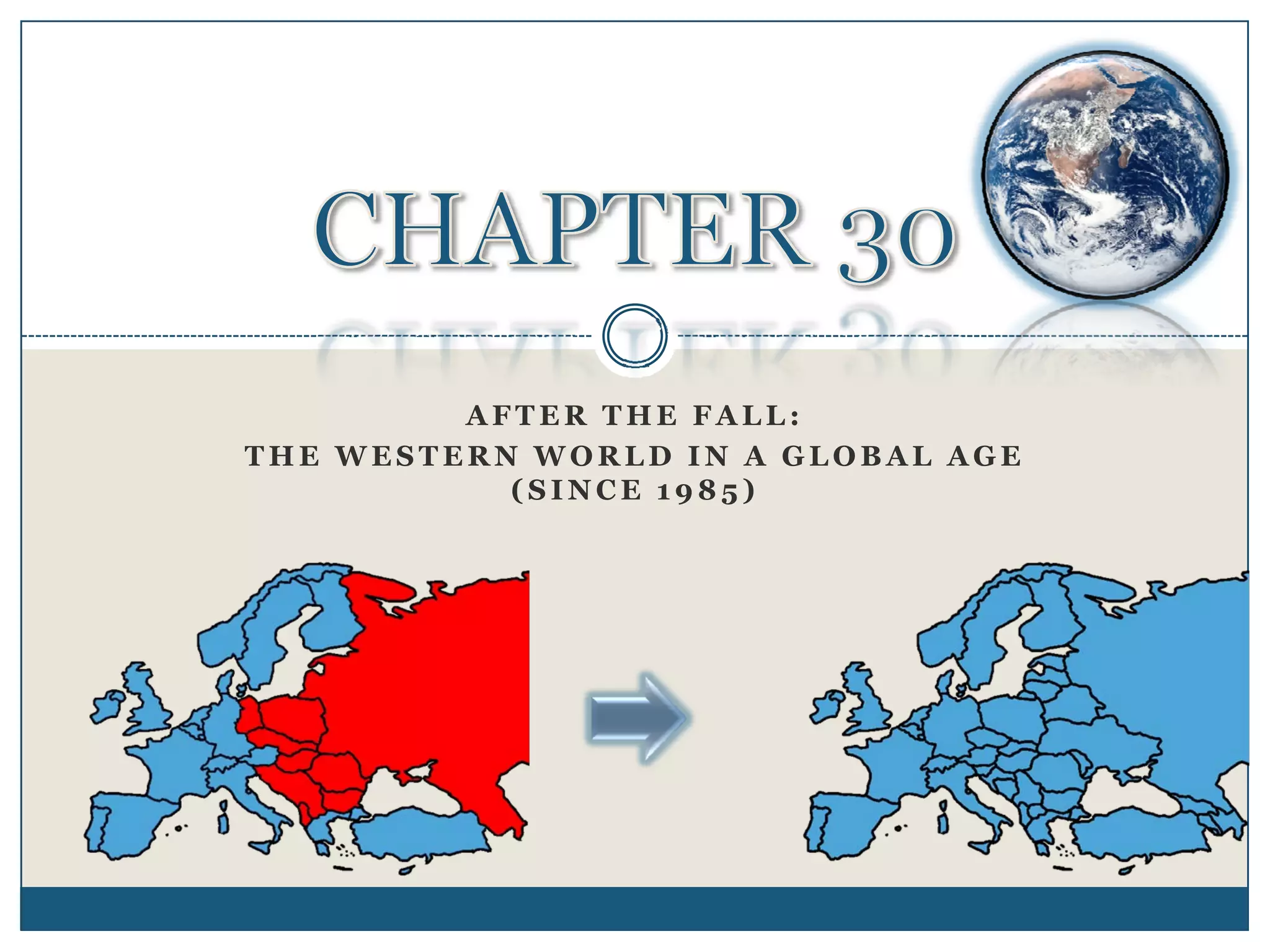 The document discusses the collapse of communist rule in Eastern Europe and the Soviet Union in the late 1980s and early 1990s. It describes Mikhail Gorbachev's reforms in the Soviet Union which led to the dissolution of the USSR and independence of former Soviet republics. It then discusses the aftermath of the Soviet collapse in Russia and former Eastern bloc countries, including conflicts in the Balkans arising from the breakup of Yugoslavia.