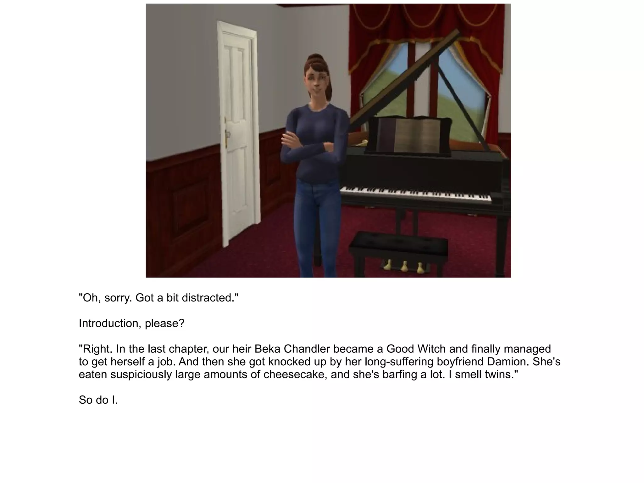 Beka Chandler has given birth to twins, a girl named Bella and a girl named Zoey. The chapter follows Beka and Damion raising the twins from babies through toddlerhood, showing milestones like first steps, birthdays, and learning to talk. It also includes updates on renovating the house to accommodate the growing family and hijinks from other characters in their world.