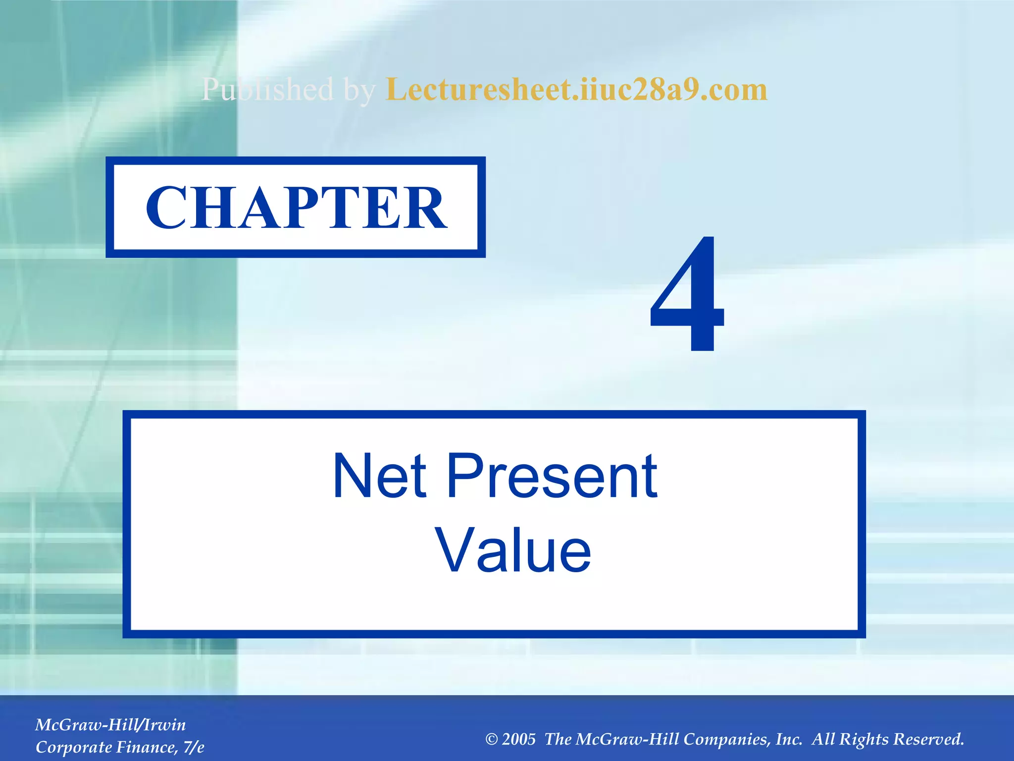 The document discusses net present value calculations for various cash flow scenarios over multiple time periods, including: