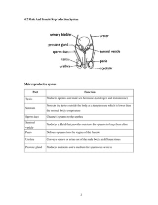 2. It describes the male and female reproductive systems and their key parts.