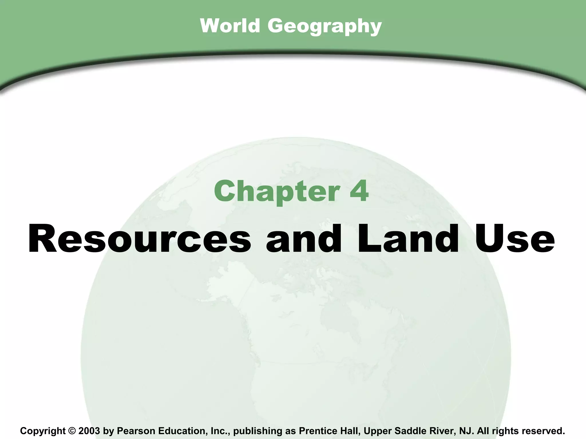 This document is a textbook chapter on resources and land use from a world geography course. It is divided into two sections. Section 1 discusses different types of natural resources such as renewable resources, nonrenewable resources, and various energy sources. Section 2 covers different categories of economic activity including primary, secondary, tertiary and quaternary industries. It also discusses global trade patterns and indicators used to analyze a country's level of development.