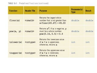 - Functions must be declared before use with a prototype specifying the return type and parameters.