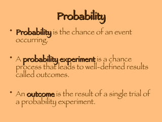 - Classical probability which uses equally likely outcomes and sample spaces to calculate probabilities