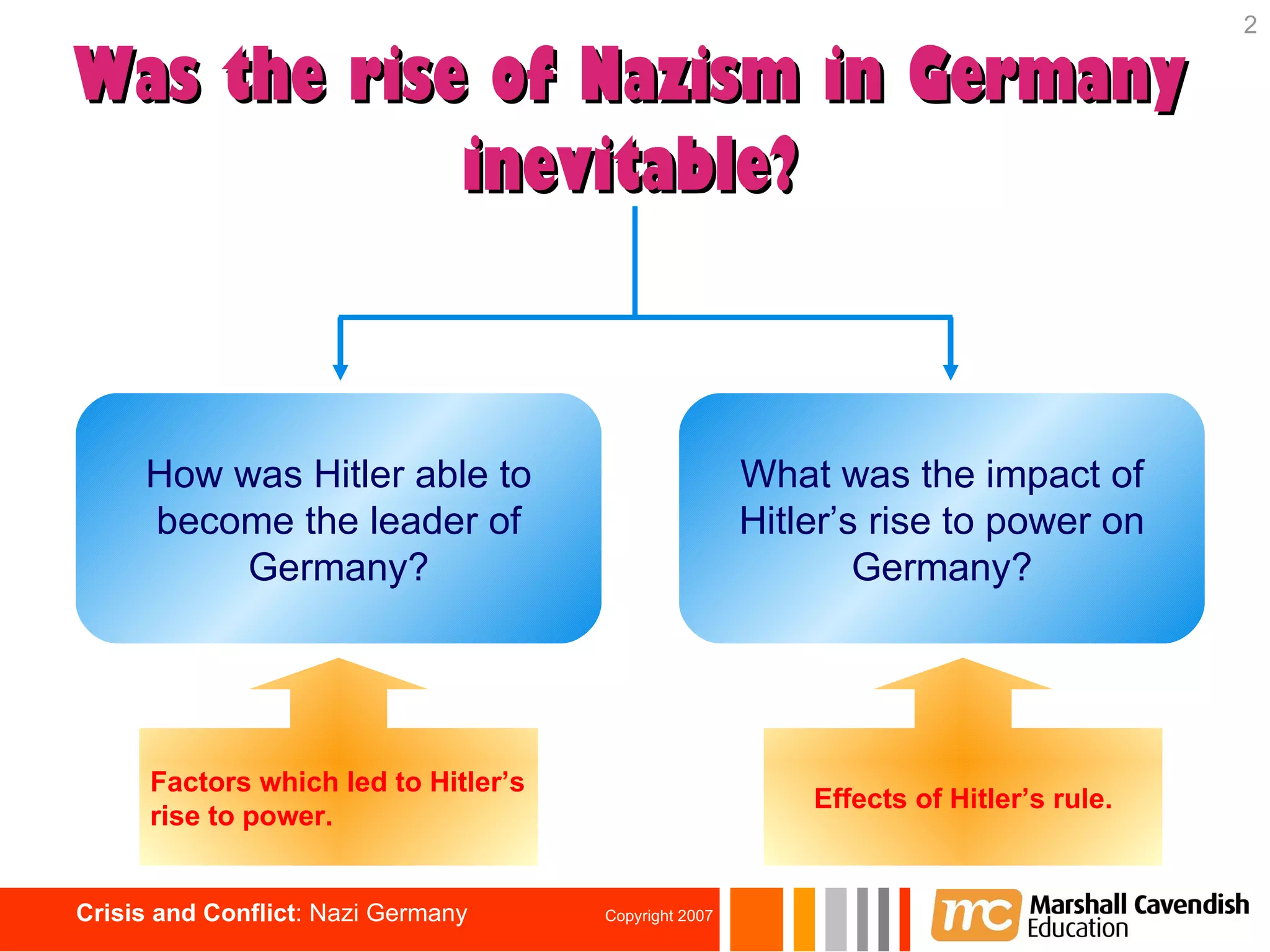 The document summarizes factors that led to Hitler's rise to power in Germany in the 1930s. The Weimar government was unpopular due to economic struggles following World War 1. Hitler gained support by promising to restore Germany's power and overturn the Treaty of Versailles. He took advantage of the weaknesses of the Weimar government and fears of communism. Through his charismatic speaking and reorganization of the Nazi party, Hitler was able to rise to power and become Chancellor of Germany in 1933.