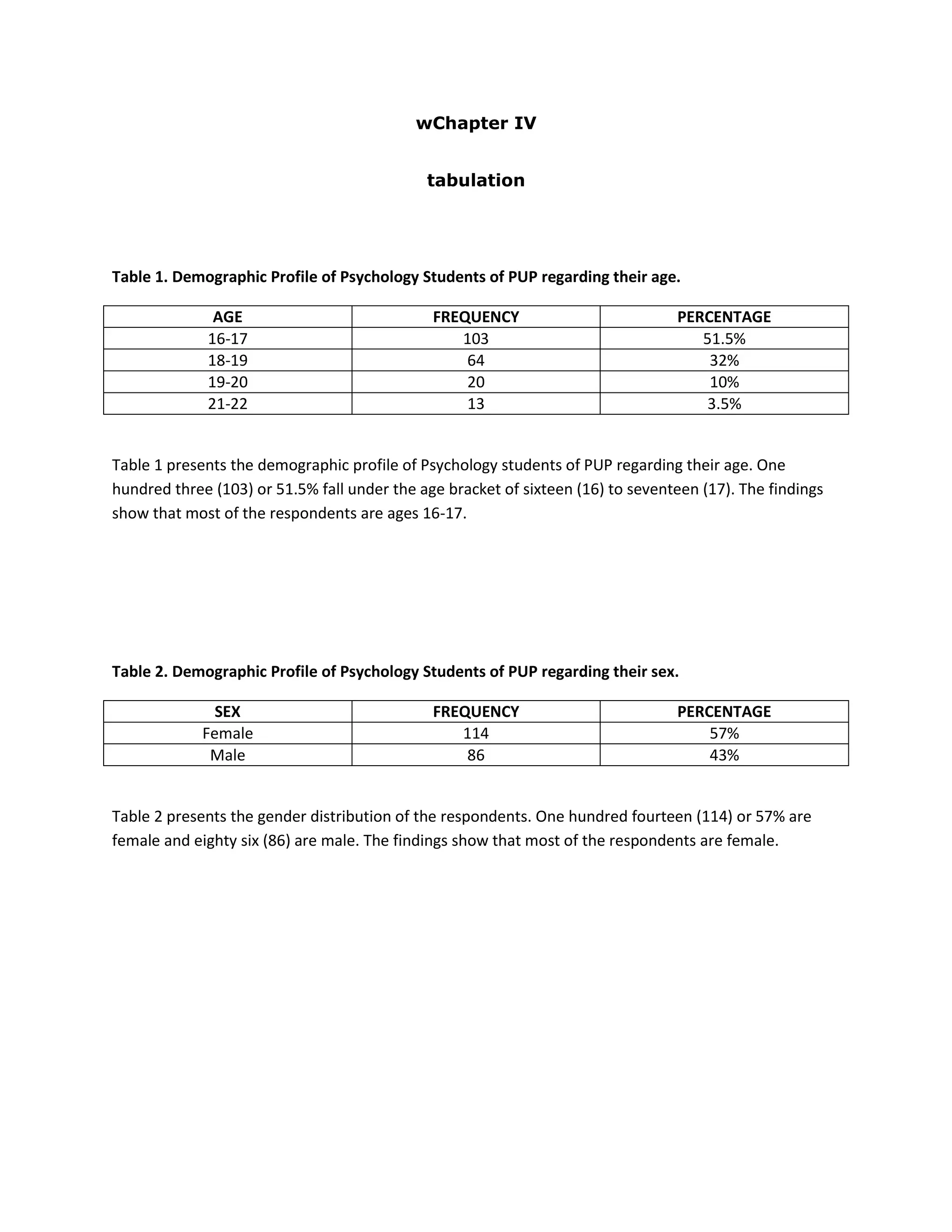 The document contains 10 tables that present data on the demographic profile and behaviors of psychology students from PUP regarding their age, sex, responses to questions about technological development and behavioral changes, and the relationship between technological changes and student behavior. Key findings include: