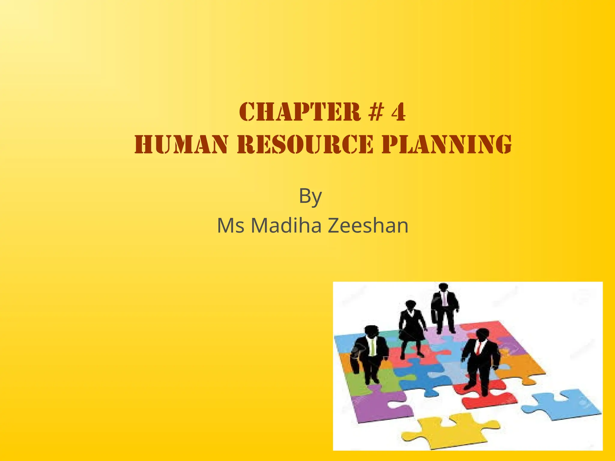 Chapter 4 discusses human resource planning (HRP) as a foundational component of HR management strategy, focusing on anticipating future HR needs based on current capabilities. The document outlines key objectives and methods for forecasting human resources, including techniques like extrapolation and managerial judgment. Additionally, it addresses succession planning, outlining its importance in maintaining organizational continuity and highlighting design shifts for effective implementation.