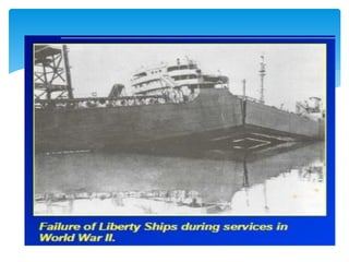 This document discusses various materials testing methods. It describes mechanical properties testing which involves destructive testing of specimens to determine properties like strength, ductility, and toughness. Common destructive tests mentioned are hardness tests and impact tests like the Charpy and Izod tests. Non-destructive testing methods discussed include dye penetration, magnetic particle, ultrasonic, and radiographic testing. Specific hardness tests covered are Rockwell, Brinell, Vickers, and Shore hardness tests.