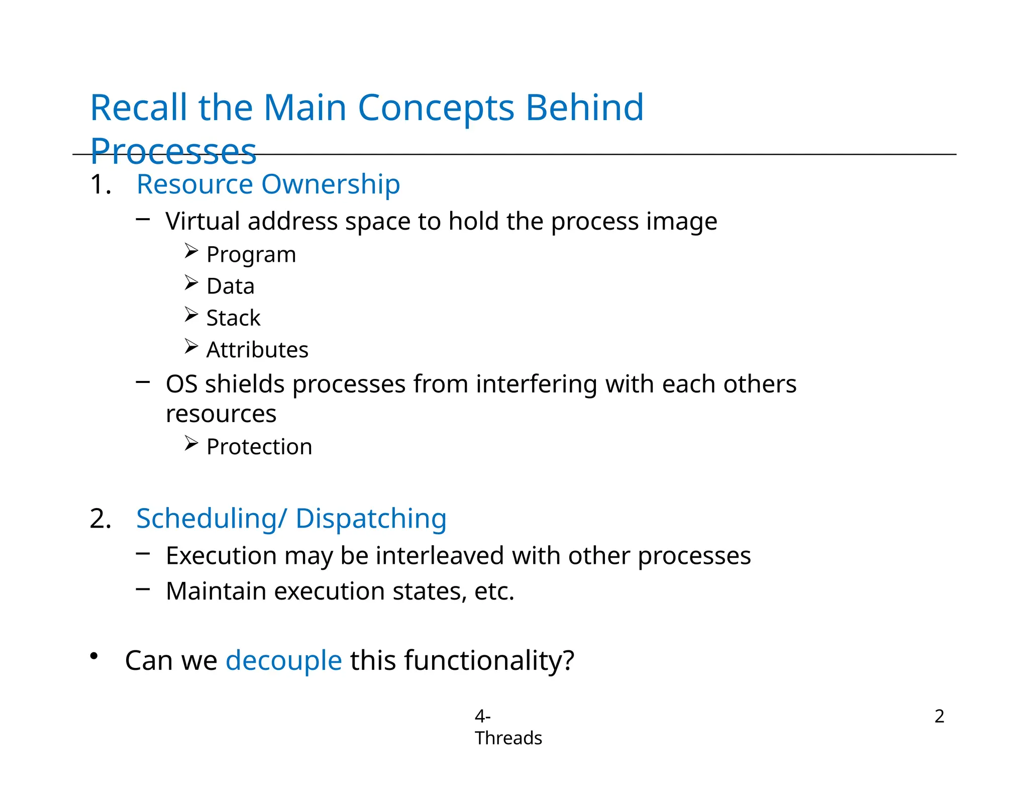 The document discusses multithreading in operating systems, distinguishing between processes and threads, where threads are the units of execution sharing the same resources within a process. It outlines the characteristics, benefits, and various models of threading, including user-level and kernel-level threads, as well as their implementations and management through libraries like POSIX and Win32. Additionally, it covers thread creation, termination, and safe passing of arguments among threads, highlighting their non-deterministic nature.