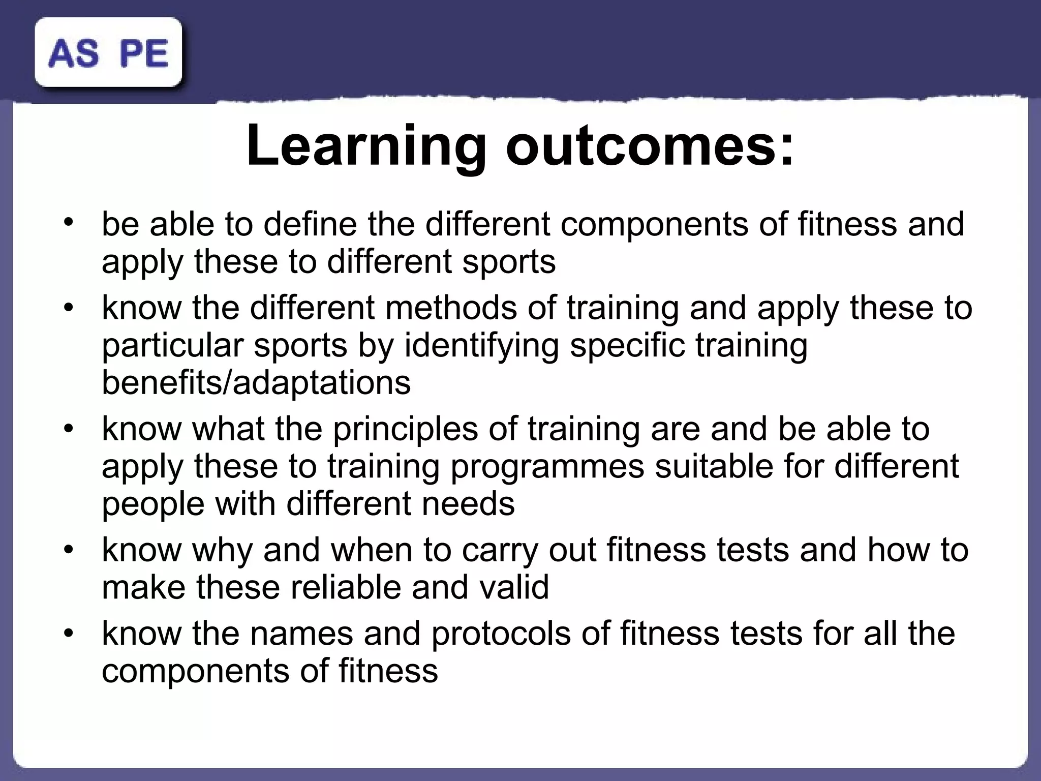 This document discusses different components of fitness including body composition, body types, and energy systems. Body composition describes percentages of fat, bone, and muscle. There are three main body types: ectomorphic, mesomorphic, and endomorphic. The three systems that produce ATP in the body are the creatine phosphate system, lactic acid system, and aerobic system, which produce ATP through different metabolic pathways using substrates like creatine phosphate, glucose, glycogen, and fatty acids.