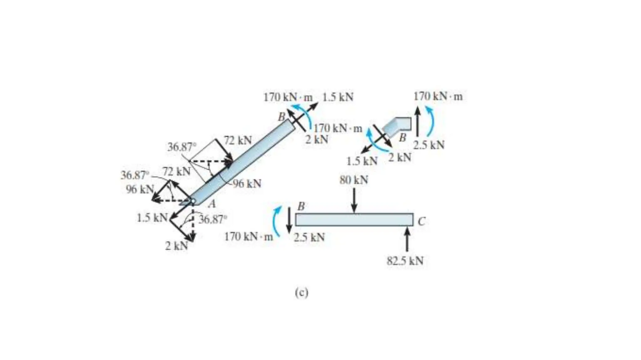 1) Using a method of sections to determine internal forces at a specified point by analyzing the external loads and support reactions.