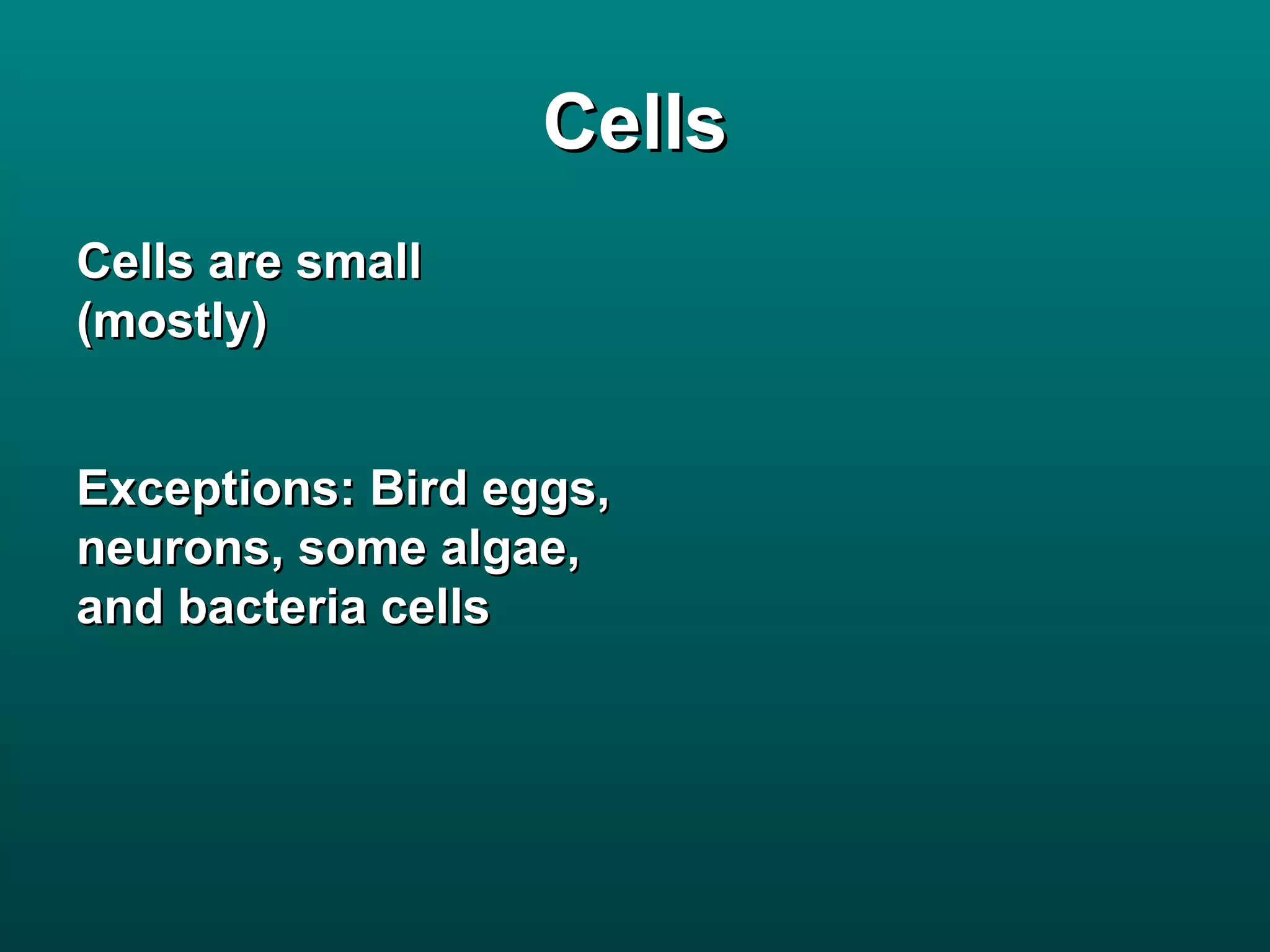 Cells are small to maintain a high surface area to volume ratio which allows for efficient exchange of substances. There are two main types of cells - prokaryotic cells which are smaller and lack organelles, and eukaryotic cells which are larger and have membrane-bound organelles that perform specialized functions. Key organelles in eukaryotic cells include the nucleus, mitochondria, chloroplasts, endoplasmic reticulum, Golgi apparatus, lysosomes, cytoskeleton, and vacuoles.