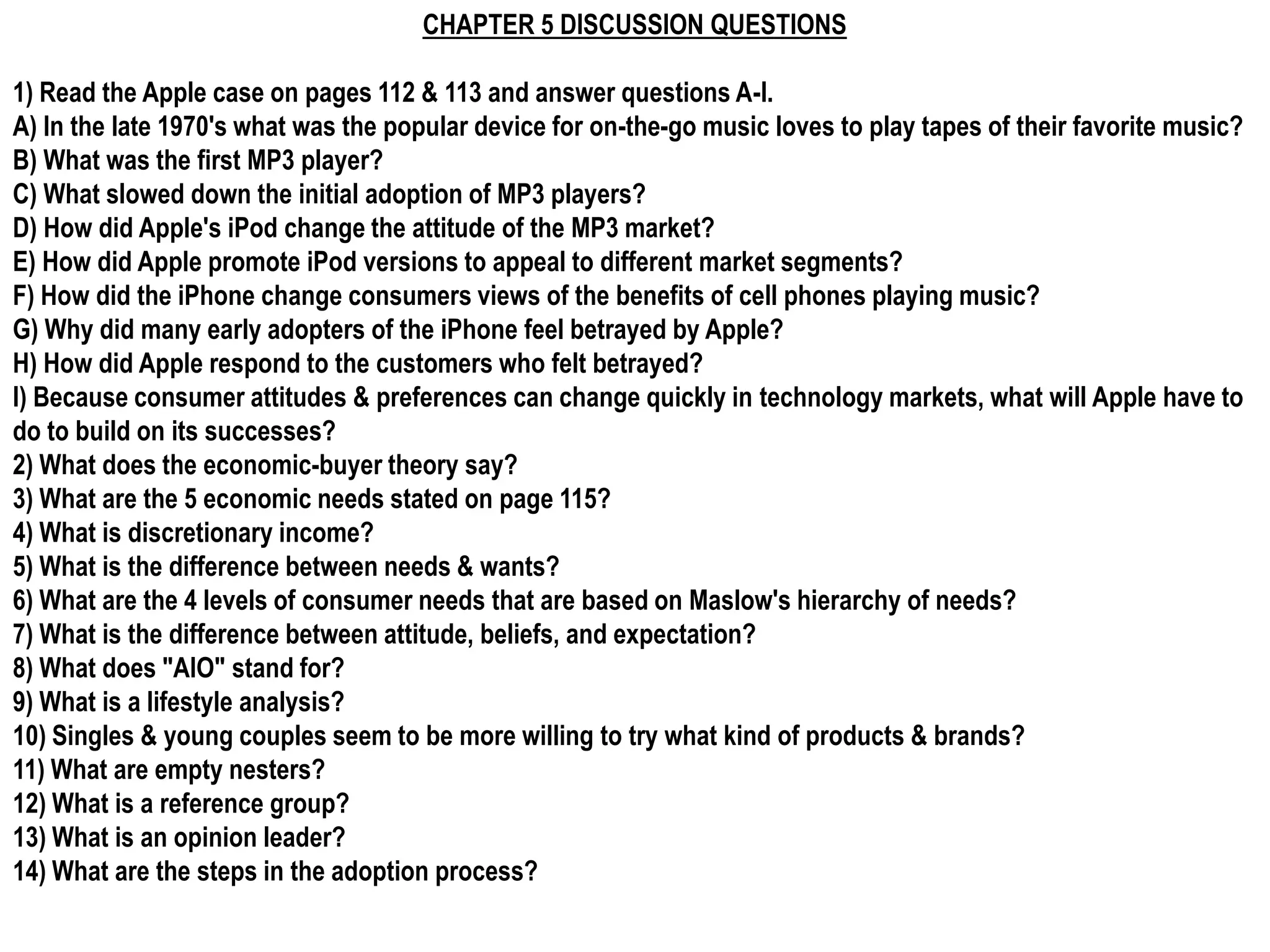 1) Apple's iPod changed the MP3 market by addressing customer needs through iTunes legal downloads, easy organization software, and stylish yet functional devices.