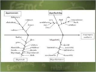 ส่วนโครงกระดูกที่เป็นตัวปลา ซึ่งได้รวบรวมปัจจัย อันเป็นสาเหตุของปัญหา และ