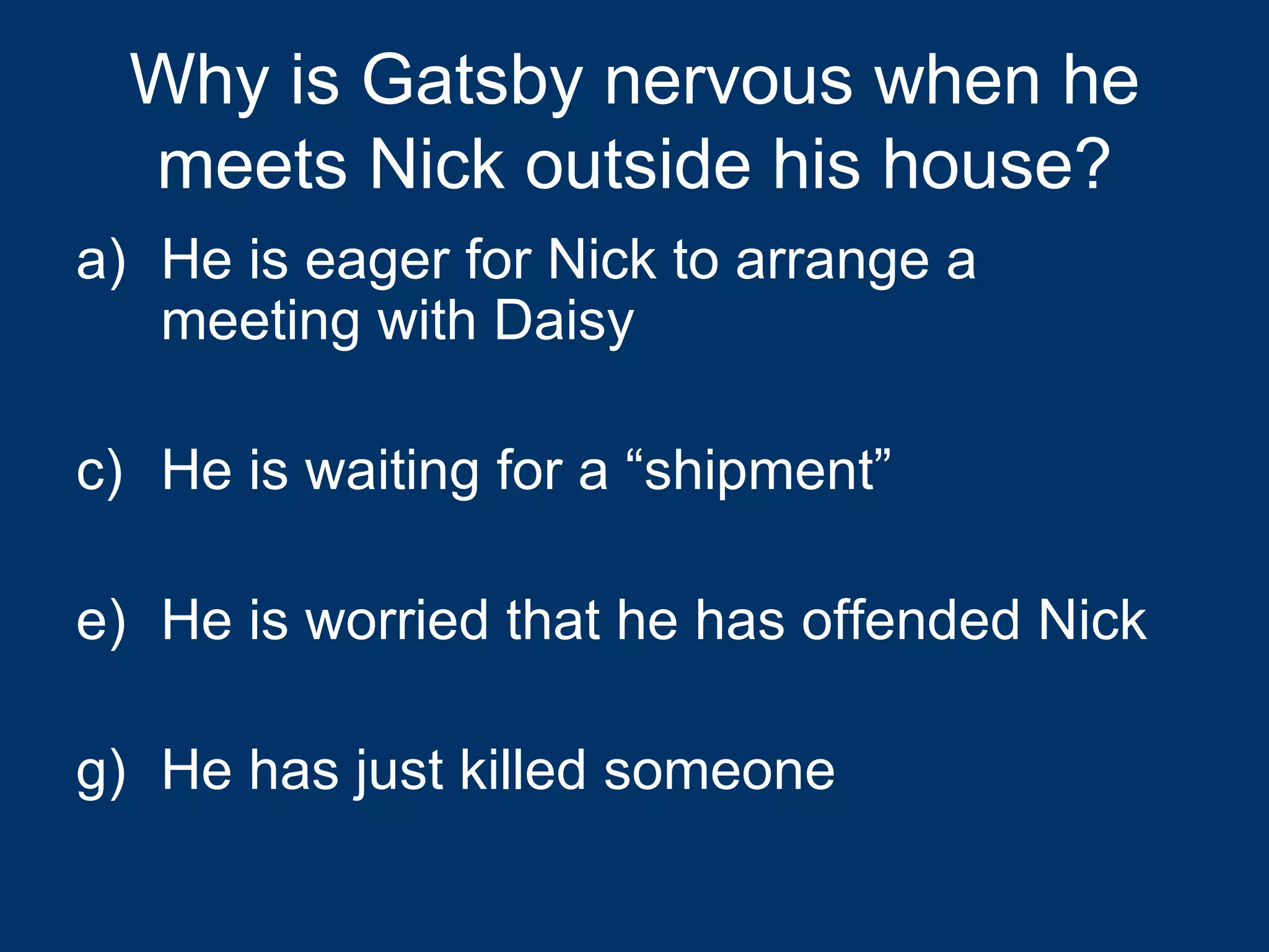 This chapter summarizes key events and reveals important details in Chapter 5 of The Great Gatsby. Gatsby is nervous to meet Daisy again after many years apart. He shows Daisy old letters he wrote to her, which makes her cry. Nick decides to leave Gatsby's mansion after feeling excluded by Gatsby and Daisy reconnecting. The chapter is pivotal, as Gatsby's long-awaited reunion with Daisy drives the plot forward, shifting the focus to their romance and the tensions within it.