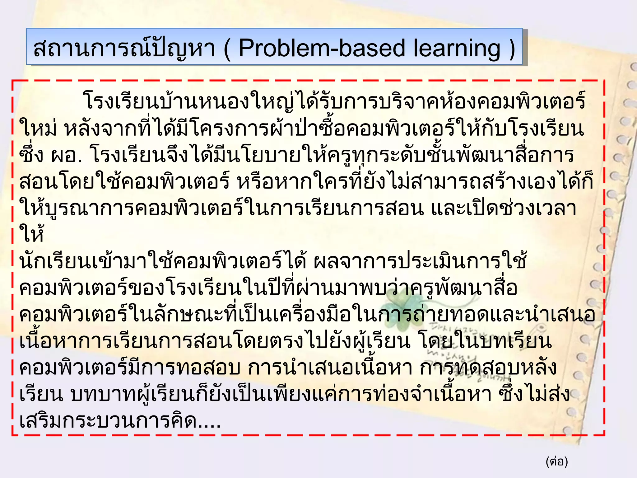 สถานการณ์ปัญหา ( Problem-basedlearning )สถานการณ์ปัญหา ( Problem-based learning )