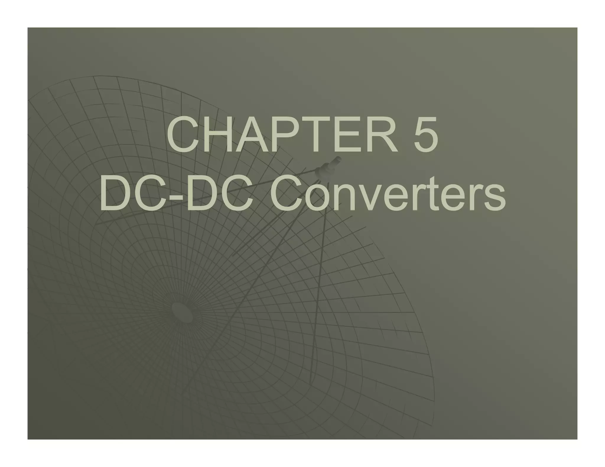 2) A buck converter is a type of step-down DC-DC converter that produces an output voltage lower than the input voltage. It contains a switch, diode, and inductor. The inductor current ripples between a maximum and minimum value depending on the duty cycle of the switch.