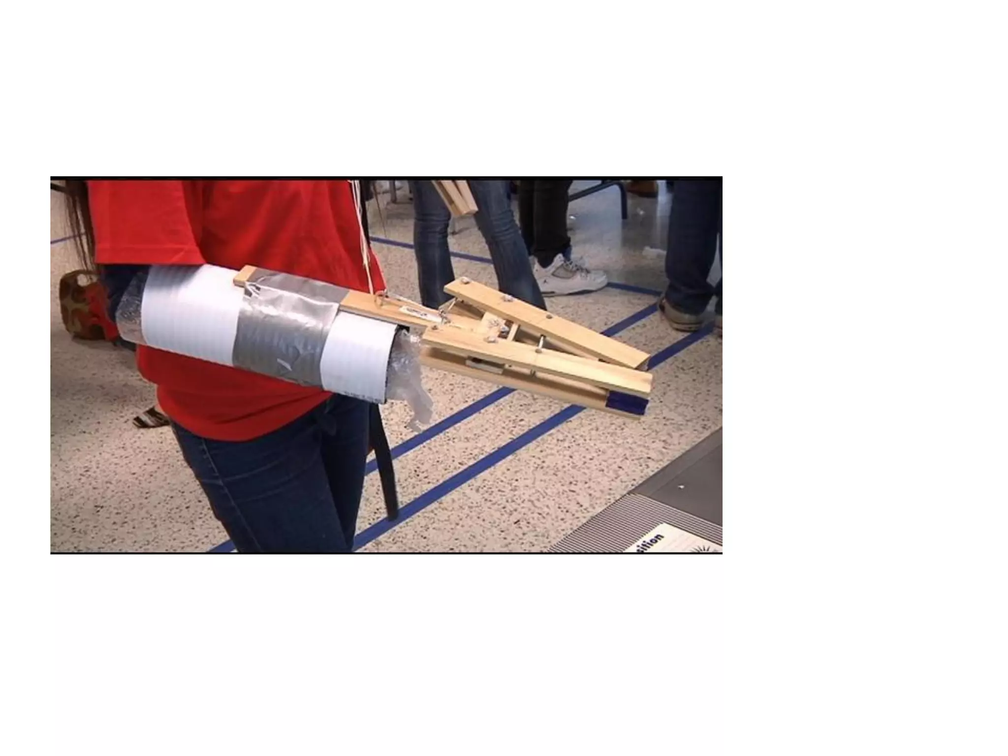 The document provides information about designing a prosthetic arm for a classmate who recently lost part of her arm below the elbow. It outlines the design challenge which is to create a low-cost prosthetic device that allows her to perform daily tasks. The device must meet criteria such as costing less than $40 and weighing less than 3kg. It also describes the performance tasks the device will be evaluated on, including tossing balls into targets at various distances and placing objects in a container. Background research activities are suggested to inform the design such as patent searches, reverse engineering, and user interviews.
