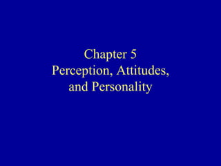This chapter discusses human perception, attitudes, and personality. It covers topics like perceptual processes and errors, self-perception, social perception and attribution processes. The chapter aims to explain how people form impressions of others and develop views of themselves. It also discusses the nature of attitudes, personality development and the effects of culture on these domains.